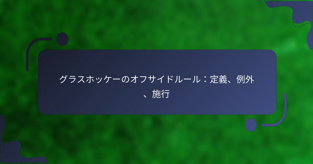 グラスホッケーのオフサイドルールは、選手がボールがプレーされる際に相手のゴールよりもボールや最後から二番目のディフェンダーに近い位置にいることで不公平なアドバンテージを得ることを防ぐ重要な規則です。このルールは公正なプレーを促進するだけでなく、フィールド上での戦略的なチームワークも奨励します。審判は選手の位置を監視することでこのルールを施行し、その例外を理解することは、選手やコーチがゲームを効果的に進め、ペナルティを避けるために不可欠です。 グラスホッケーのオフサイドルールとは? グラスホッケーのオフサイドルールは、選手がボールがプレーされる瞬間に相手のゴールよりもボールや最後から二番目のディフェンダーに近い位置にいることで不公平なアドバンテージを得ることを防ぐために設計されています。このルールは公正なプレーを維持し、フィールド上でのチームワークと戦略を奨励します。 グラスホッケーにおけるオフサイドルールの定義 グラスホッケーでは、選手がボールがプレーされる際に相手のゴールラインよりもボールと最後から二番目の相手(通常は最後のディフェンダー)に近い場合、その選手はオフサイドと見なされます。オフサイドになることはペナルティにはならず、ゲームは停止され、相手チームにフリーヒットが与えられます。 選手がオフサイドとされるのは、プレーに積極的に関与している場合、例えばボールを受け取ったり相手に干渉したりしている場合のみであることを理解することが重要です。選手がオフサイドの位置にいてもプレーに関与していない場合、違反は発生しません。 オフサイド状況を支配する主要な原則 グラスホッケーにおけるオフサイド状況を判断するためのいくつかの主要な原則があります。まず、選手の位置はボールがプレーされる瞬間に評価され、ボールを受け取るときではありません。次に、選手のプレーへの関与が重要であり、単にオフサイドの位置にいるだけでは違反とは見なされず、ゲームに影響を与える必要があります。 オフサイドの位置が考慮されるためには、ボールは前方にプレーされなければなりません。 フリーヒット、コーナー、またはペナルティコーナーからは選手はオフサイドにはなりません。 選手はペナルティを避けるために、ボールがプレーされるまでオンサイドの位置を維持しなければなりません。 ゲームプレイにおけるオフサイドルールの重要性 オフサイドルールは、グラスホッケーの流れと公正さを維持する上で重要な役割を果たします。選手が「ゴールハンギング」をすることを防ぐことで、チームワークと戦略的なプレーを奨励し、選手が効果的にパスを出し、動くことを要求します。このルールは、チームがフィールドをナビゲートするために協力しなければならないため、よりダイナミックで魅力的なゲームを作り出すのにも役立ちます。 さらに、オフサイドルールはスキルの発展を促進し、選手がボールやディフェンダーに対するランニングやポジショニングのタイミングを学ぶことを助けます。このルールを理解することは、すべてのレベルの選手にとって不可欠であり、彼らのゲームプレイやフィールド上での意思決定に直接影響を与えます。 オフサイドルールの歴史的背景 オフサイドルールは、ホッケーの発祥以来大きく進化してきました。元々、このルールは非常に厳格で、選手はオフサイドと見なされる位置にいるだけでペナルティを受けることが多く、選手や観客の間に混乱やフラストレーションを引き起こしていました。時間が経つにつれて、ルールを明確にし、ゲームプレイを向上させるための調整が行われました。 今日、グラスホッケーのオフサイドルールは、公正さを維持し、攻撃的なプレーを奨励するバランスを反映しています。現代の解釈では、より流動的な動きと戦略的なポジショニングが可能になり、選手やファンにとってゲームがよりエキサイティングなものとなっています。 オフサイドルールに関する一般的な誤解 グラスホッケーのオフサイドルールには多くの誤解があります。一般的な誤解の一つは、選手が最後のディフェンダーの前にいる場合、自動的にオフサイドと見なされるというものです。実際には、重要な要素はボールがプレーされる瞬間のボールの位置であり、選手の位置だけではありません。 もう一つの誤解は、ボールが選手に向かっていない場合、選手がオフサイドの位置にいることでペナルティを受ける可能性があるというものです。選手がプレーに関与していない限り、ペナルティは科されません。これらのニュアンスを理解することは、選手、コーチ、ファンがゲームの戦略を完全に理解するために不可欠です。 グラスホッケーのオフサイドルールの例外は何ですか? グラスホッケーのオフサイドルールには、ゲームプレイに影響を与える特定の例外があります。これらの例外を理解することは、選