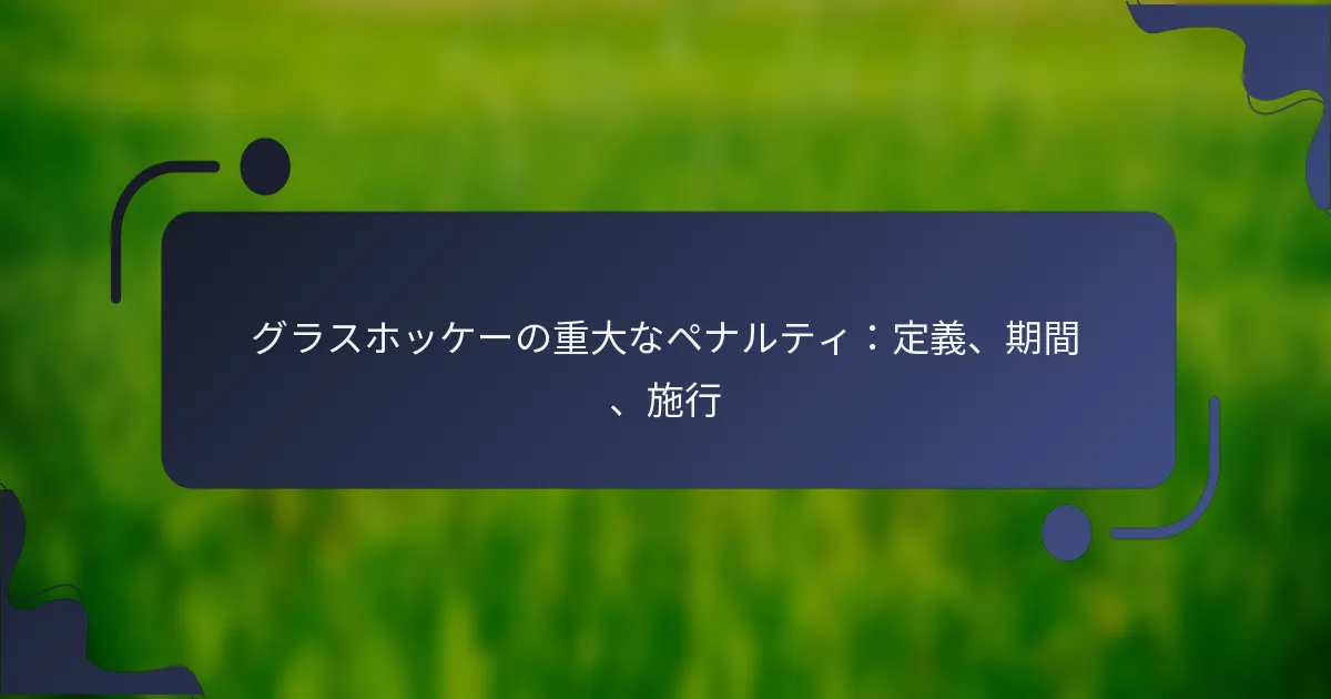 グラスホッケーにおけるメジャーペナルティは、選手が5分間一時的にゲームから除外される重大な違反です。このペナルティは、危険または過度に攻撃的な行動に対して適用され、ゲームのダイナミクスやペナルティを受けた選手のチームに大きな影響を与える可能性があります。メジャーペナルティの意味と適用を理解することは、選手やチームがスポーツの課題を効果的に乗り越えるために不可欠です。 グラスホッケーにおけるメジャーペナルティとは何ですか? グラスホッケーにおけるメジャーペナルティは、選手が指定された期間、通常は5分間、ゲームから一時的に除外される深刻な違反です。このペナルティは、危険または過度に攻撃的と見なされる行動に対して適用され、ゲームプレイ中にペナルティを受けた選手とそのチームに大きな影響を与えます。 メジャーペナルティの定義 メジャーペナルティは、軽微なペナルティと比較して、プレイからの長期的な停止を必要とする厳しいルール違反として定義されます。通常、このペナルティは5分間続き、その間、違反した選手はゲームに参加できません。ペナルティを受けた選手のチームは、1人少ない状態でゲームを続けなければならず、相手チームに有利な状況を生み出します。 メジャーペナルティは、選手の安全を維持し、ゲームの整合性を保つために適用されます。これらは、怪我を引き起こす可能性のある行動やスポーツマンシップに反する行動に対して発行されます。審判は、行動の深刻さと意図に基づいて、違反がメジャーペナルティに該当するかどうかを判断する裁量を持っています。 メジャーペナルティとマイナーペナルティの違いを区別する基準 メジャーペナルティとマイナーペナルティの主な違いは、違反の深刻さにあります。メジャーペナルティは、戦闘、高いスティック、危険なタックルなど、怪我の重大なリスクを伴う行動に対して適用されます。一方、マイナーペナルティは、つまずきやホールディングなど、比較的軽微な違反に関連し、2分間の短い停止が課されます。 もう一つの重要な違いは、ゲームへの影響です。メジャーペナルティは、違反したチームが5分間少人数でプレイすることを意味しますが、マイナーペナルティは2分間の停止を許可し、相手チームが得点しなければペナルティを受けた選手がゲームに戻る可能性があります。この違いは、ゲームの勢いと戦略に大きな影響を与えることがあります。 メジャーペナルティにつながる違反の例 グラスホッケーにおいてメジャーペナルティにつながる行動はいくつかあります。一般的な例には以下が含まれます: 選手同士の戦闘 他の選手を危険にさらす意図的なボディチェックやタックル 怪我を引き起こす高いスティック 相手を傷つけるための意図的なスティックの使用 これらの違反は深刻に受け止められ、ゲームの流れを妨げるだけでなく、選手の安全にもリスクをもたらします。審判はこれらの行動を認識し、選手を守るために適切にペナルティを適用するよう訓練されています。 メジャーペナルティに関する一般的な誤解 一般的な誤解の一つは、身体接触を伴うすべてのペナルティがメジャーペナルティと見なされるということです。実際には、区別は接触の性質と深刻さによります。軽微な違反は接触を伴うことがありますが、重大な怪我のリスクを伴うことはありません。 もう一つの誤解は、メジャーペナルティが相手チームに得点を保証するということです。ペナルティを受けたチームが少人数でプレイしている間に、相手チームはその利点を活かすために5分間のペナルティ中に得点する必要があります。得点がなければ、ペナルティが終了した後にペナルティを受けた選手はゲームに戻ることができます。 メジャーペナルティはどのくらいの時間続きますか? グラスホッケーにおけるメジャーペナルティは通常5分間続きます。この間、ペナルティを受けた選手はフィールドから離れていなければならず、チームの競争能力に影響を与えます。 メジャーペナルティの標準的な期間 メジャーペナルティの標準的な期間は5分であり、その間、違反した選手はゲームに参加できません。このペナルティは、相手チームがその間に得点したかどうかに関係なく適用されます。得点があった場合でも、ペナルティを受けた選手は5分が経過するまでフィールドに戻ることはありません。 この期間は、違反したチームに対して大きな不利をもたらすように設計されており、相手チームがその状況を活かすことができます。コーチは、この時間に得点機会を最大化するために戦略を調整することがよくあります。 メジャーペナルティがチームプレイに与える影響