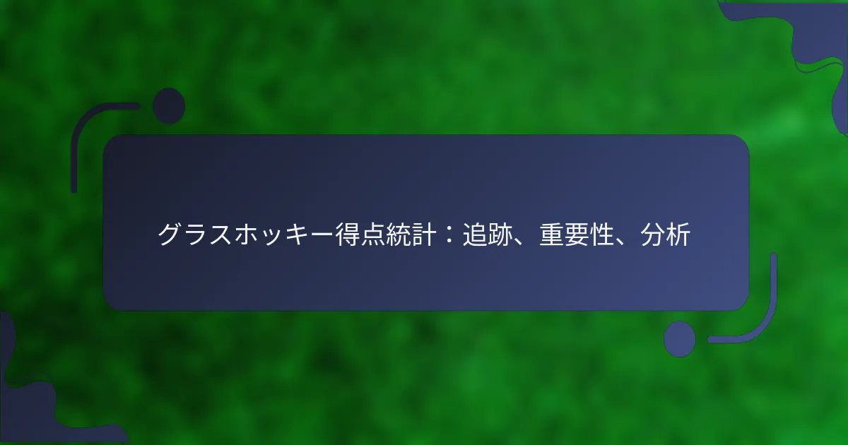 グラスホッケーの得点統計は、試合中に得点されたゴールを追跡することで、チームや選手のパフォーマンスを監視する重要な指標です。これらの統計は、攻撃能力や選手の効果を把握するための貴重な洞察を提供し、ゲーム分析や戦略開発において重要な役割を果たします。 グラスホッケーの得点統計とは? グラスホッケーの得点統計は、試合中に得点されたゴールに関するチームや選手のパフォーマンスを追跡する指標です。これらの統計は、攻撃能力、ゲーム戦略、選手の効果に関する洞察を提供し、分析や改善に不可欠です。 グラスホッケーにおける得点統計の定義 グラスホッケーにおける得点統計は、ゴール、アシスト、全体的な攻撃パフォーマンスに関連するさまざまなデータポイントを含みます。これらは、チームや選手が試合中にどれだけ効果的に機会をゴールに変換するかを定量化するのに役立ちます。一般的に追跡される統計には、総得点、試合ごとの得点、ゴールあたりのアシストが含まれます。 これらの統計は通常、シーズン中に集計され、選手の貢献やチームのダイナミクスを評価するために分析されます。これらの指標を理解することで、コーチやアナリストは戦術や選手育成に関する情報に基づいた意思決定を行うことができます。 得点分析に使用される主要な指標 グラスホッケーの得点を分析するために重要な指標はいくつかあります。これには以下が含まれます: 得点:選手またはチームがシーズン中に得点した総ゴール数。 試合ごとの得点:総得点をプレイした試合数で割った平均。 アシスト:選手が提供するアシストの数で、得点機会を作る役割を示します。 シュート率:得点したゴール数と総シュート数の比率で、得点の効率を反映します。 ポイント:得点とアシストの合計で、選手の攻撃貢献を包括的に示します。 これらの指標は、個人およびチームのパフォーマンスを評価するために重要であり、ターゲットを絞った改善や戦略的計画を可能にします。 グラスホッケーの得点における歴史的傾向 年々、グラスホッケーの得点傾向は、ルールの変更、選手のトレーニング、戦術的アプローチの影響を受けて大きく進化しています。歴史的に見て、得点の平均は変動しており、リーグやプレイレベルに応じて、チームは試合ごとに通常2〜4ゴールの平均を持っています。 最近の傾向では、トレーニングや戦略の進歩により得点効率が向上しています。チームは現在、攻撃プレイや高品質な得点機会の創出により多くの焦点を当てており、過去の数十年と比較して試合ごとの平均得点が高くなっています。 他のスポーツとの得点統計の比較 他のスポーツと比較すると、グラスホッケーの得点統計は独自の特徴を示します。例えば、サッカーでは得点が一般的に低く、チームは試合ごとに1〜2ゴールの平均を持っています。それに対して、バスケットボールでは、チームが試合で100ポイントを超えることがよくあります。 グラスホッケーにおける得点機会の頻度は、アイスホッケーのようなスポーツとより比較可能であり、迅速なトランジションや攻撃プレイが短期間で複数のゴールにつながることがあります。これらの違いを理解することで、グラスホッケーの得点をスポーツ全体の文脈で位置づけることができます。 チームと選手にとっての得点統計の重要性 得点統計は、パフォーマンスや改善の余地を把握するために、チームと選手の両方にとって重要です。チームにとって、これらの指標はゲームプランを戦略化し、攻撃プレイの強みと弱みを特定するのに役立ちます。コーチはこのデータを使用して戦術を調整し、全体的なチームパフォーマンスを向上させることができます。 個々の選手にとって、得点統計は個人の成長のためのベンチマークとして機能します。選手はチームへの貢献を評価し、得点指標に基づいて改善の目標を設定できます。このデータ駆動型のアプローチは、責任感を育み、選手がスキルや技術を磨くことを促します。 グラスホッケーの得点統計はどのように追跡されるか? グラスホッケーの得点統計は、試合中の正確なデータ収集を確保するために、手動と自動の方法を組み合わせて追跡されます。これらの統計は、チームのパフォーマンスや選手の貢献を分析するために不可欠であり、コーチングの決定や戦略に影響を与える洞察を提供します。