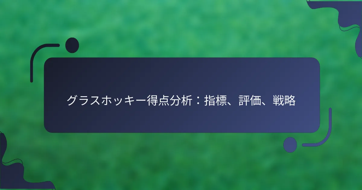 グラスホッケーの得点分析は、チームのパフォーマンスを理解し、攻撃戦略を強化するために不可欠です。試合ごとの得点、シュート精度、個々の選手の貢献といった重要な指標を評価することで、チームは強みと改善点を特定できます。ターゲットを絞ったトレーニング技術や戦術的アプローチを実施することで、得点効率と全体的な試合の効果を大幅に向上させることができます。 グラスホッケーの得点分析における主要な指標は何ですか? グラスホッケーの得点分析における主要な指標には、試合ごとの得点、シュート精度、選手のパフォーマンス指標が含まれます。これらの指標を理解することで、チームは攻撃の効果を評価し、改善点を特定できます。 パフォーマンス指標としての試合ごとの得点 試合ごとの得点は、チームの得点効率を反映する基本的な指標です。攻撃の出力を明確に示し、リーグやトーナメント内でチームを比較するために使用できます。 通常、成功したチームは競技レベルに応じて、試合ごとに約2〜4得点を平均します。この指標を時間をかけて監視することで、得点の改善や戦略的変更の影響といったトレンドを明らかにすることができます。 コーチは、歴史的データと現在のパフォーマンスに基づいて、チームのために現実的な目標を設定すべきです。試合ごとの得点を定期的に見直すことで、戦術や選手の役割を調整し、得点の可能性を最大化するのに役立ちます。 シュート精度とその重要性 シュート精度は、得点に結びつくシュートの割合を測定します。この指標は、チームが得点機会を実際の得点にどれだけ効果的に変換できるかを示すため、重要です。 シュート精度が高い(通常は15〜20%以上)は、選手がチャンスを最大限に活用していることを示唆します。逆に、精度が低い場合は、より良いシュート選択やフィニッシングスキルの向上が必要であることを示すかもしれません。 チームは、技術と意思決定に焦点を当てたターゲットを絞った練習セッションを通じてシュート精度を向上させることができます。シュートの位置やゴールキーパーのポジショニングを分析することも、改善のための洞察を提供します。 得点における選手のパフォーマンス指標 得点、アシスト、シュート率などの個々の選手のパフォーマンス指標は、チームの得点努力への貢献を評価するために重要です。これらの指標は、重要な選手とその試合への影響を特定するのに役立ちます。 例えば、高い得点数と強いアシスト数を持つ選手は、重要な攻撃資産である可能性が高いです。コーチは、選手の育成や試合戦略に関する情報に基づいた意思決定を行うために、これらの指標を追跡すべきです。 高度な分析を活用することで、選手のパフォーマンスの理解をさらに深めることができます。期待得点(xG)などの指標は、創出されたチャンスの質に基づいて選手の得点可能性についての深い洞察を提供します。 アシストが得点分析に与える影響 アシストは、チームワークや得点機会を創出する能力を反映するため、得点分析において重要な役割を果たします。アシストの数が多いことは、通常、機能する攻撃と相関関係があります。 アシストを追跡することで、チームは選手間の化学反応を理解し、フィールド上での効果的な組み合わせを特定できます。チームメイトのために得点チャンスを継続的に作り出す選手は、全体的な得点戦略にとって非常に貴重です。 コーチは、選手がアシストを作ることに焦点を当てるよう奨励すべきです。これは、個々の統計を向上させるだけでなく、チームのパフォーマンスも向上させます。アシストデータを定期的に見直すことで、攻撃戦術を洗練させるのに役立ちます。 得点機会に影響を与える防御指標 タックル、インターセプト、ブロックなどの防御指標は、得点機会に大きな影響を与えます。強力な防御は、相手チームのチャンスを制限し、試合の全体的な得点状況に影響を与えることができます。 防御が優れているチームは、しばしばカウンターアタックの機会を創出し、得点チャンスを増加させます。防御パフォーマンスを監視することで、チームは攻撃と防御のバランスを維持するために戦略を調整できます。 コーチは、得点データとともに防御指標を分析して、パターンや改善点を特定すべきです。防御スキルに焦点を当てることで、試合のコントロールが向上し、チームの得点機会が増加します。 グラスホッケーにおける得点はどのように評価されますか? グラスホッケーにおける得点評価は、選手の貢献、チームのパフォーマンス、試合の文脈を反映するさまざまな指標を分析することを含みます。これらの要因を理解することで、コーチやアナリストは効果を評価し、改善のための戦略を立てることができます。