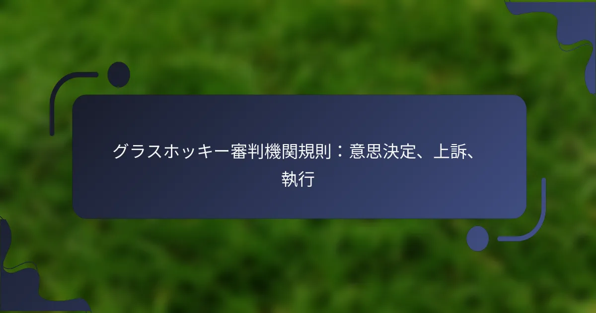 グラスホッケーにおいて、ミスコンダクトペナルティは、選手のスポーツマンシップに反する行動やゲームの誠実性を損なう行動に対する懲戒措置として機能します。これらのペナルティは、口頭での虐待や身体的な衝突など、さまざまな違反から生じる可能性があり、一時的にゲームから排除され、チームのダイナミクスに影響を与えることがあります。審判によって施行されるミスコンダクトペナルティは、フィールド上でのフェアプレイとスポーツマンシップを維持するために重要です。 グラスホッケーにおけるミスコンダクトペナルティとは何ですか? グラスホッケーにおけるミスコンダクトペナルティは、選手のスポーツマンシップに反する行動やゲームの精神に反する行動に対して取られる懲戒措置です。このペナルティは通常、選手が一時的にゲームから排除され、チームのパフォーマンスに影響を与えます。 ミスコンダクトペナルティの定義 ミスコンダクトペナルティは、ゲームの誠実性に対して不適切または有害と見なされる行動に対処するために設計されています。これらのペナルティは必ずしも身体的接触を伴うわけではなく、フェアプレイを妨げる行動に焦点を当てています。ミスコンダクトペナルティを受けた選手は、指定された期間フィールドを離れなければならず、通常は約10分です。 ミスコンダクトに関連する主要用語 ミスコンダクト:ルールやゲームの精神に反する行動。 ペナルティボックス:選手がペナルティを受けるエリア。 スポーツマンシップに反する行動:フェアプレイの原則に反する、または無礼な行動。 ゲームミスコンダクト:ゲームからの排除につながる、より深刻な形のミスコンダクト。 ミスコンダクトペナルティの分類 ミスコンダクトペナルティは、違反の重大性や性質に基づいてさまざまなカテゴリに分類できます。一般的な分類には、軽微なミスコンダクト、重大なミスコンダクト、ゲームミスコンダクトが含まれます。軽微なミスコンダクトは通常、短いペナルティ期間を伴い、重大なミスコンダクトはより長い停止につながる可能性があります。 各分類には、ペナルティが施行される期間や条件に関する特定のルールがあります。たとえば、軽微なミスコンダクトは選手が約10分間ベンチに座ることにつながる場合がありますが、ゲームミスコンダクトは選手が試合から完全に排除されることにつながる可能性があります。 ミスコンダクトと他のペナルティの違い ミスコンダクトペナルティは、個人ファウルやテクニカルファウルなど、プレイ中の身体的接触やルール違反を伴う他のタイプのペナルティとは異なります。個人ファウルはフリーヒットやペナルティストロークにつながることがありますが、ミスコンダクトペナルティは行動に焦点を当てており、直接的な身体的違反なしに選手がベンチに下がることにつながる可能性があります。 さらに、ミスコンダクトペナルティは通常、標準的なペナルティと比較して長い期間であることが多く、選手がスポーツマンシップを維持し、ゲームに対する敬意を持つ必要性を強調しています。これらの違いを理解することは、選手やコーチがルールを効果的にナビゲートするために重要です。 規制機関とそのルール さまざまな規制機関がグラスホッケーにおけるミスコンダクトペナルティのルールと施行を監督しており、国際ホッケー連盟(FIH)や各国の協会が含まれます。これらの組織は、ミスコンダクトがどのように定義され、罰せられるかを規定するガイドラインを設けており、競技間での一貫性を確保しています。 各規制機関は、ミスコンダクトペナルティの期間や適用される状況に関する特定の規則を持っている場合があります。これらのルールに精通することは、選手、コーチ、審判がフェアプレイを確保し、スポーツの基準を遵守するために不可欠です。 グラスホッケーにおけるミスコンダクトペナルティの一般的な例は何ですか? グラスホッケーにおけるミスコンダクトペナルティは、フェアプレイを妨げるさまざまな不適切な行動を含みます。これらのペナルティは、口頭での虐待、身体的な衝突、またはスポーツマンシップに反する行動から生じる可能性があり、それぞれ選手やチームに特定の影響を与えます。 口頭でのミスコンダクトの例 口頭でのミスコンダクトには、審判、対戦相手、またはチームメイトに向けた虐待的な言葉が含まれます。これは、侮辱、脅迫、またはゲームの精神を損なう軽蔑的な発言として現れることがあります。このような行動は、フィールド上のダイナミクスに影響を与えるだけでなく、懲戒処分につながる可能性もあります。 口頭でのミスコンダクトの一般的な例には、選手が審判の判定に対して口論したり、激しい瞬間に攻撃的な言葉を使ったりすることが含まれます。これらの行動は、発言の重大性に応じて、イエローカードやレッドカードにつながる可能性があ